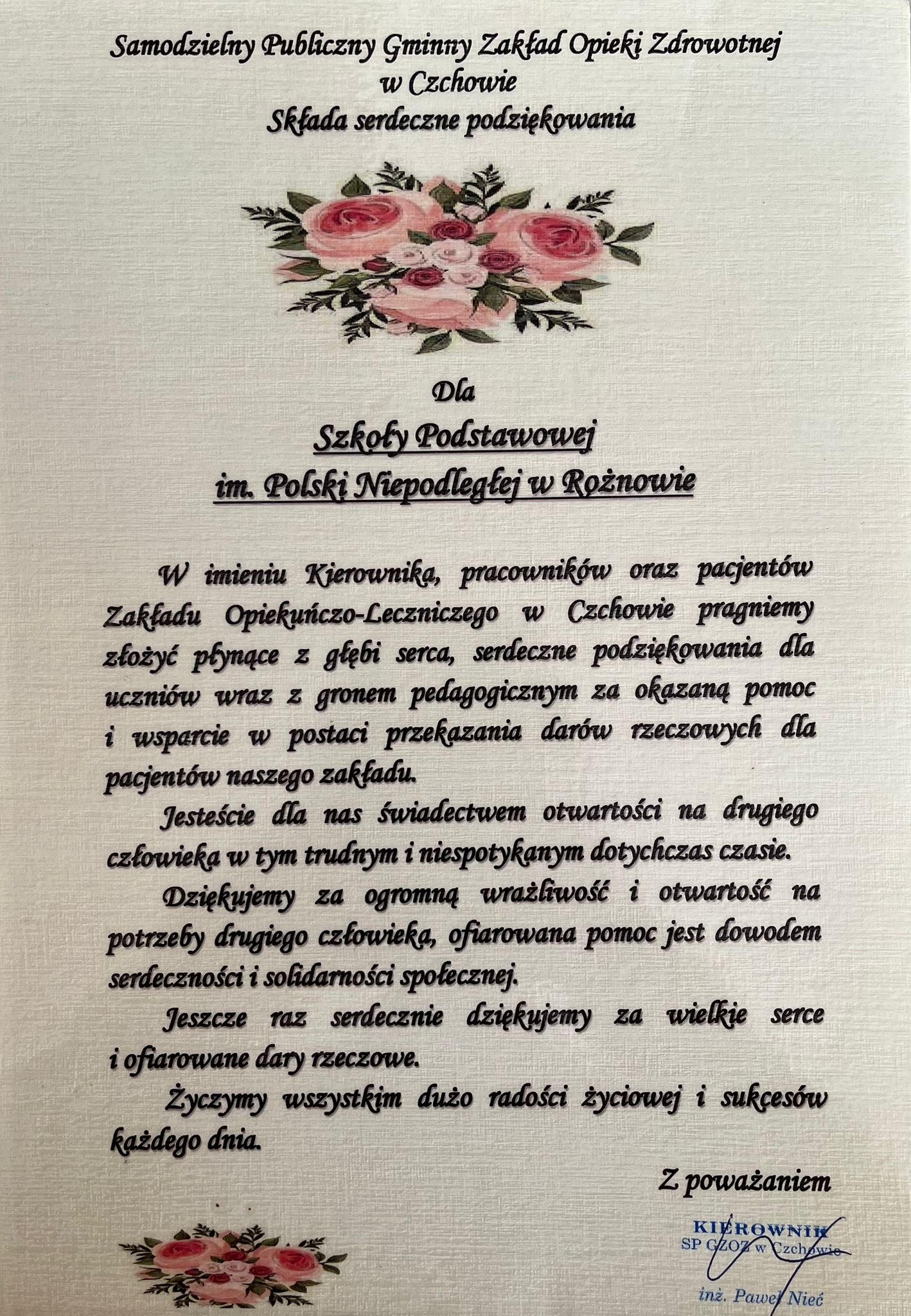 W przedświątecznym czasie społeczność naszej szkoły włączyła się w wyjątkową akcję pomocy na rzecz Zakładu Opiekuńczo-Leczniczego w Czchowie. Zorganizowana zbiórka obejmowała artykuły do higieny i pielęgnacji ciała dla pacjentów. Dzięki ogromnemu zaangażowaniu uczniów, rodziców i pracowników szkoły udało się zebrać tak wiele produktów, że każdy z podopiecznych został obdarowany 🎁