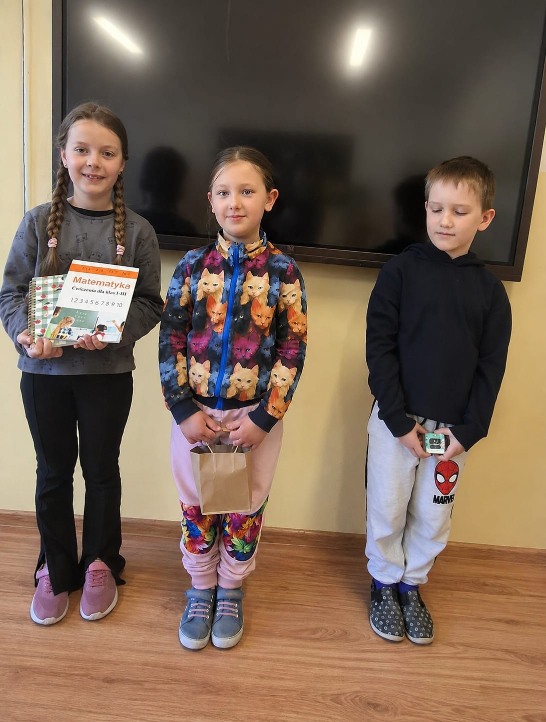 Po podliczeniu punktów wyłoniono laureatów, przyznając trzy pierwsze miejsca. Zwyciężczynią konkursu została Anna Mierzwa, która będzie reprezentować klasę pierwszą w konkursie gminnym 15 maja.