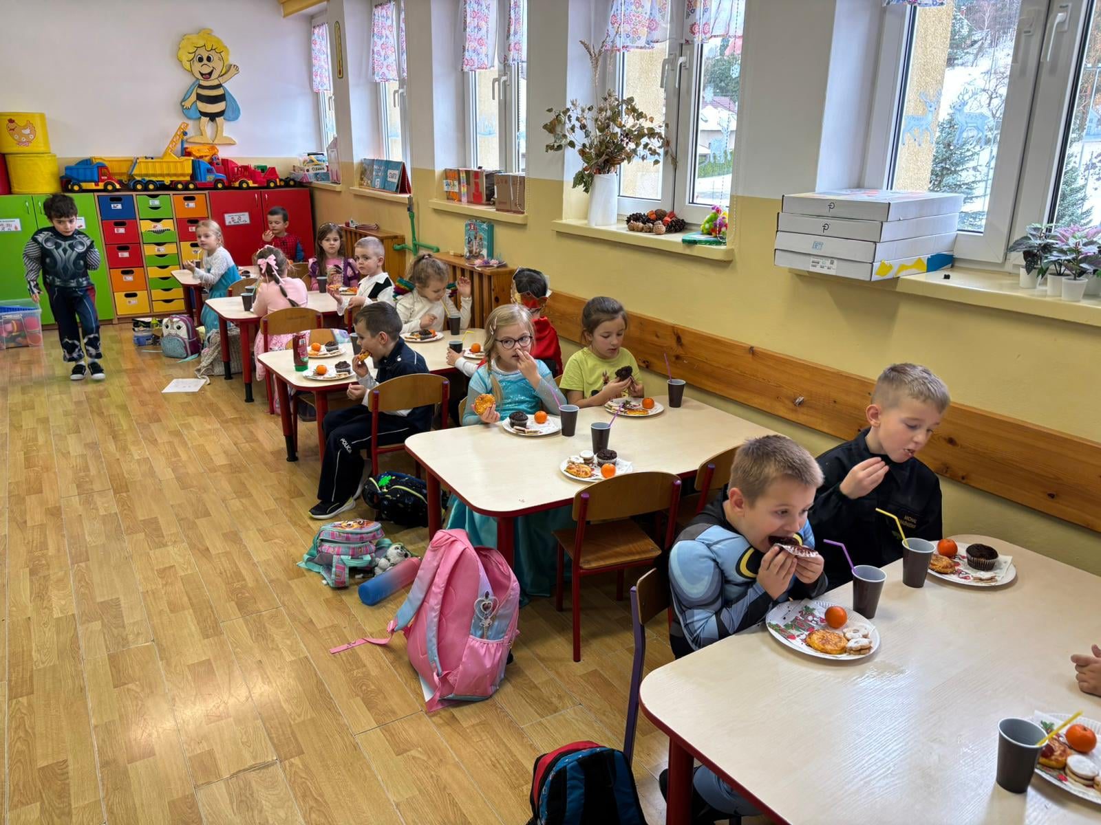 Chwile odpoczynku od zabaw i pląsów zapewniał dzieciom poczęstunek przygotowany przez Rodziców naszych przedszkolaków. Przy tej okazji dziękujemy Państwu za ogromne zaangażowanie, dzięki, któremu dzieci będą mogły mile i słodko wspominać andrzejkowe szaleństwa.