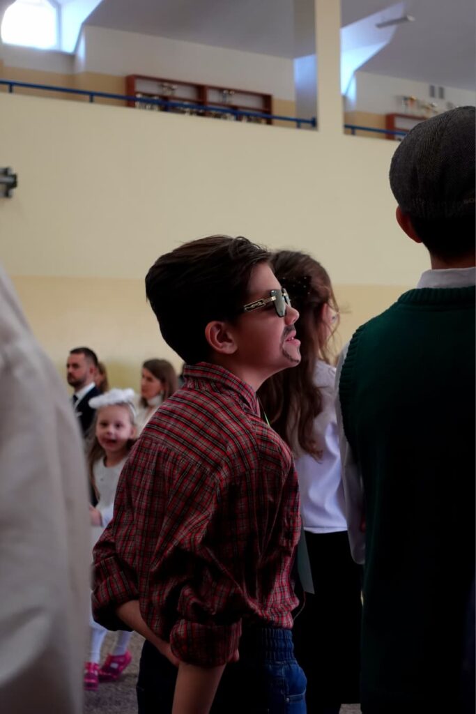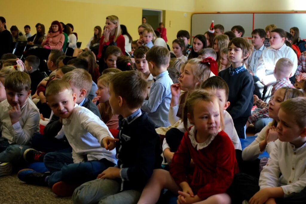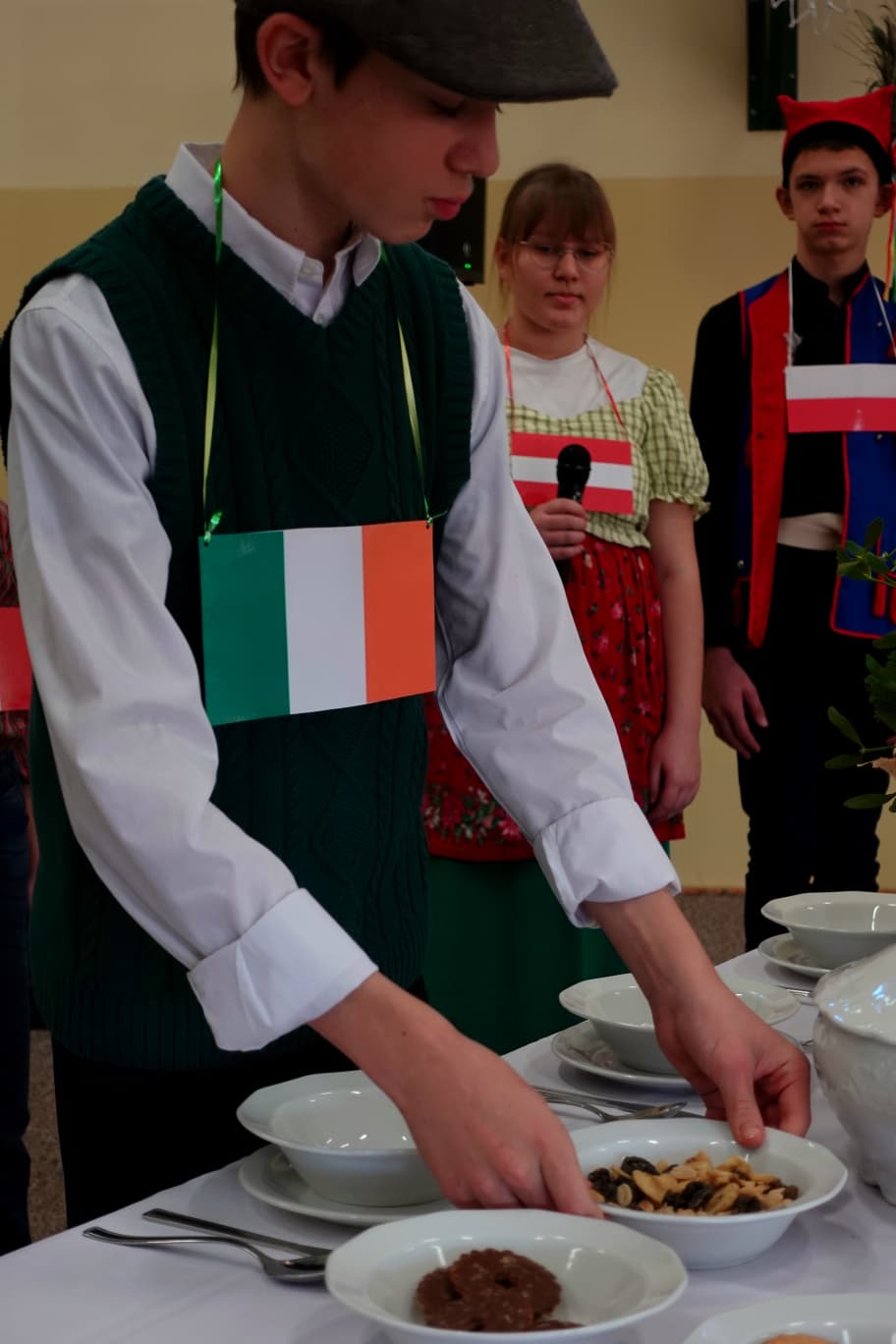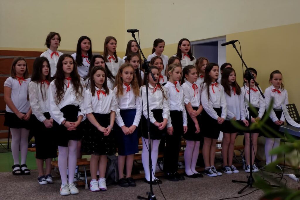 W trakcie przedstawienia poruszono temat tradycji świątecznych w różnych krajach oraz potrzebę zjednoczenia, życia w pokoju i harmonii. Uroczystość uświetniły występy chóru szkolnego pod kierunkiem Pana Jarosława Musiała.