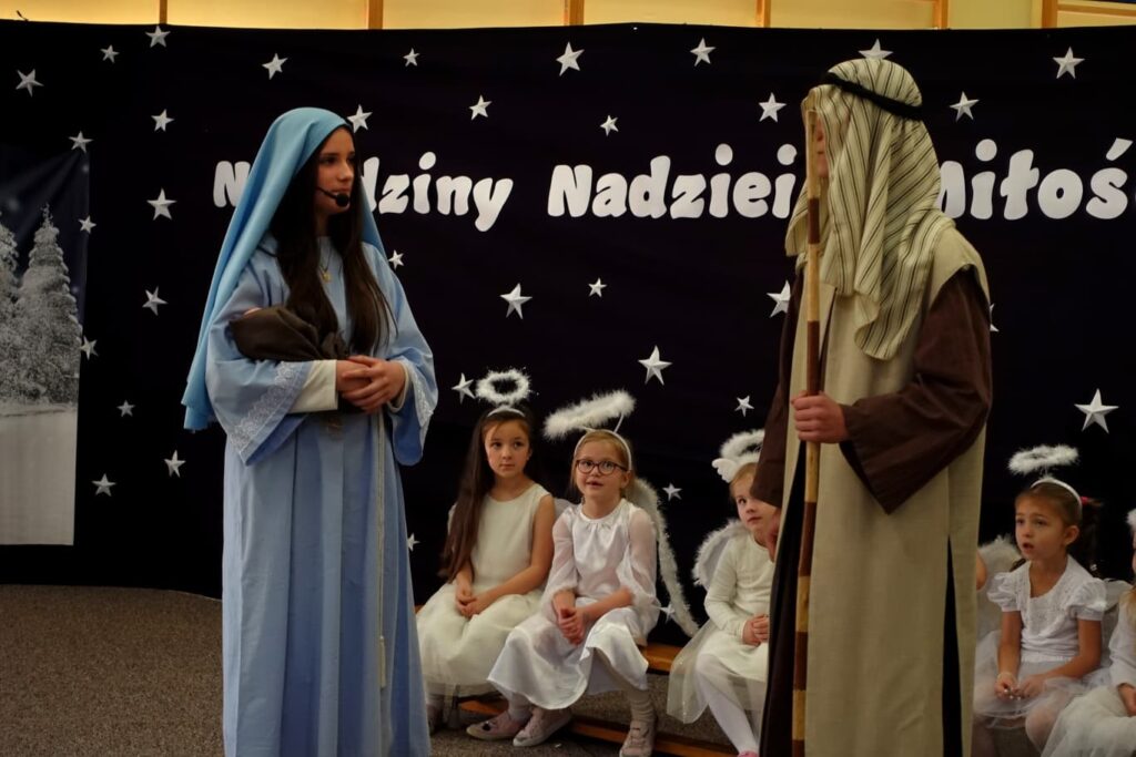 W naszej szkole odbyły się wyjątkowe jasełka bożonarodzeniowe, które wprowadziły wszystkich zgromadzonych w świąteczny nastrój. Przedstawienie zostało przygotowane przez Panią Ewę Bogdanowicz wraz z uczniami klasy VII i IV. Nad piękną i starannie dopracowaną dekoracją czuwały Pani Aneta Flądro oraz Pani Katarzyna Krawczyk.