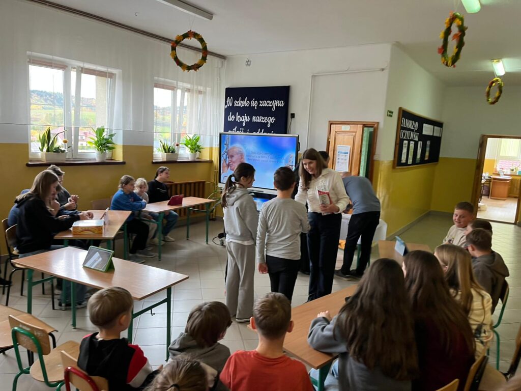 Dziś w naszej szkole odbył się konkurs wiedzy o św. Janie Pawle II – naszym Wielkim Rodaku. Uczniowie z różnych klas sprawdzili swoją wiedzę o życiu i nauczaniu papieża Polaka, rozwiązując test składający się z 40 pytań. Konkurs przeprowadzono w nowoczesnej formie – za pośrednictwem platformy Kahoot, co zapewniło wszystkim uczestnikom dużo emocji i świetną zabawę.