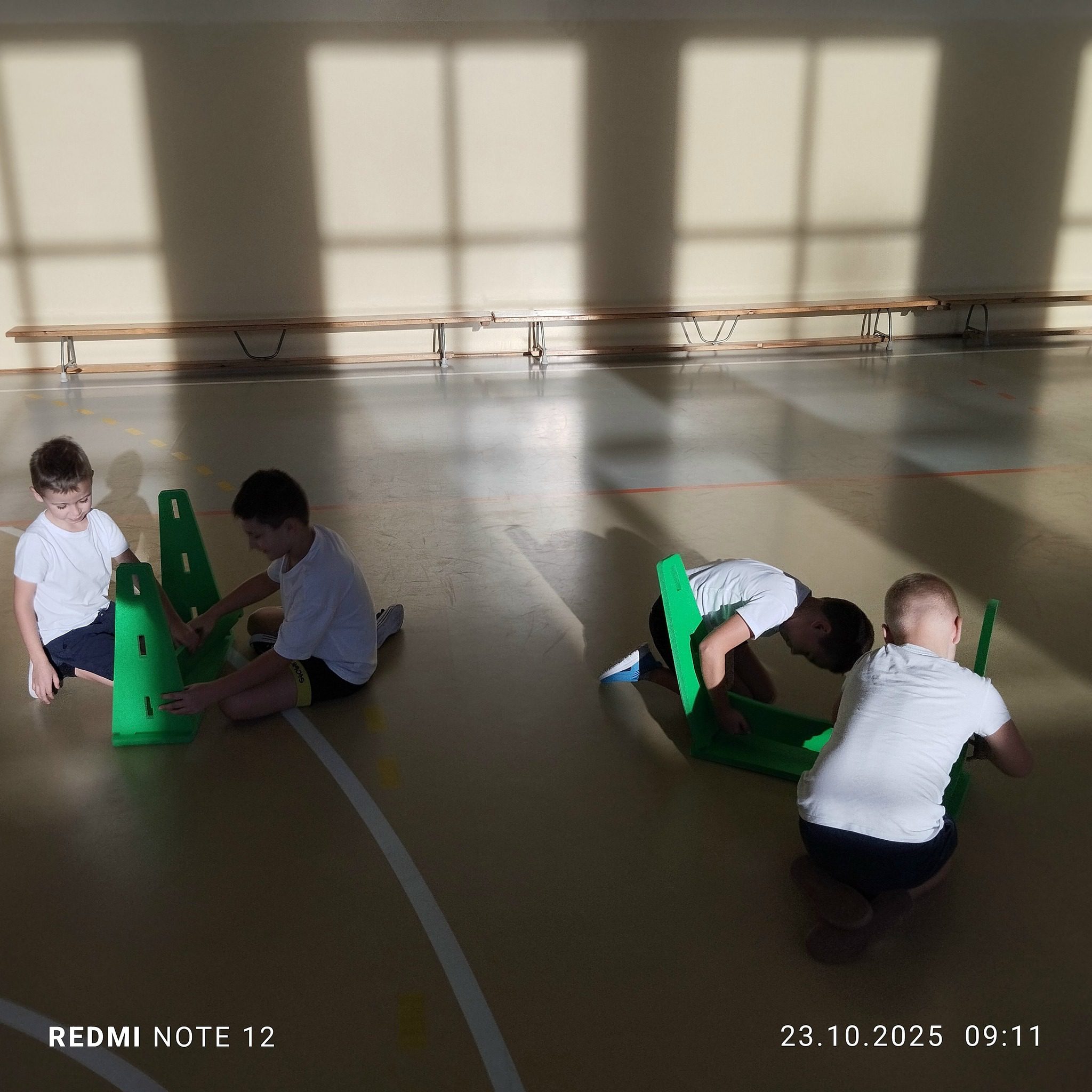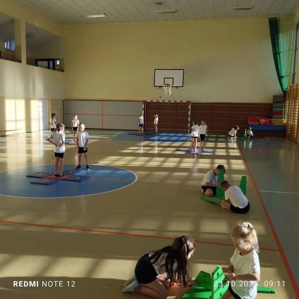 Dzięki nowym pomocnicom i ciekawym formom zajęć, dzieci świetnie się bawią, uczą współpracy i zdobywają kolejne sprawności fizyczne pod okiem swojego nauczyciela wychowania fizycznego.