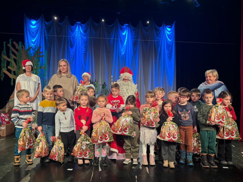 Dnia 03.12.25r. oddziały przedszkolne i klasy 1-3 uczestniczyły w wycieczce do Miejskiego Ośrodka Kultury w Nowym Sączu. Przedszkolaki oglądały spektakl pt. „O dwóch takich, co ukradli księżyc”, oparty na znanej powieści Kornela Makuszyńskiego. Podczas spektaklu zobaczyliśmy wiele ciekawych scen, piękną scenografię i efektowne stroje. Aktorzy wprowadzili dużo humoru, ale też pokazali ważne przesłanie- że praca ma wartość, a chciwość i lenistwo prowadzą do kłopotów. Największą niespodziankę sprawiło dzieciom spotkanie ze Św. Mikołajem oraz prezenty. Była to zapewne radosna i niezapomniana chwila dla Przedszkolaków.