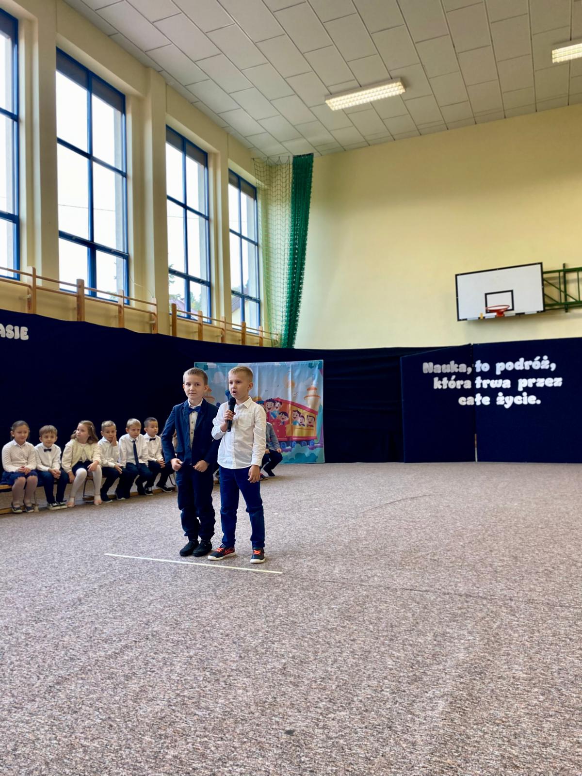 Tegoroczne ślubowanie odbyło się pod hasłem „Nauka to podróż, która trwa przez całe życie”. Scenariusz uroczystości, przygotowany przez panią Anetę Flądro, przeniósł wszystkich uczestników w niezwykłą podróż po świecie wiedzy. Pierwszoklasiści zaprezentowali program artystyczny pełen piosenek i wierszy, które zachwyciły całą szkolną społeczność.