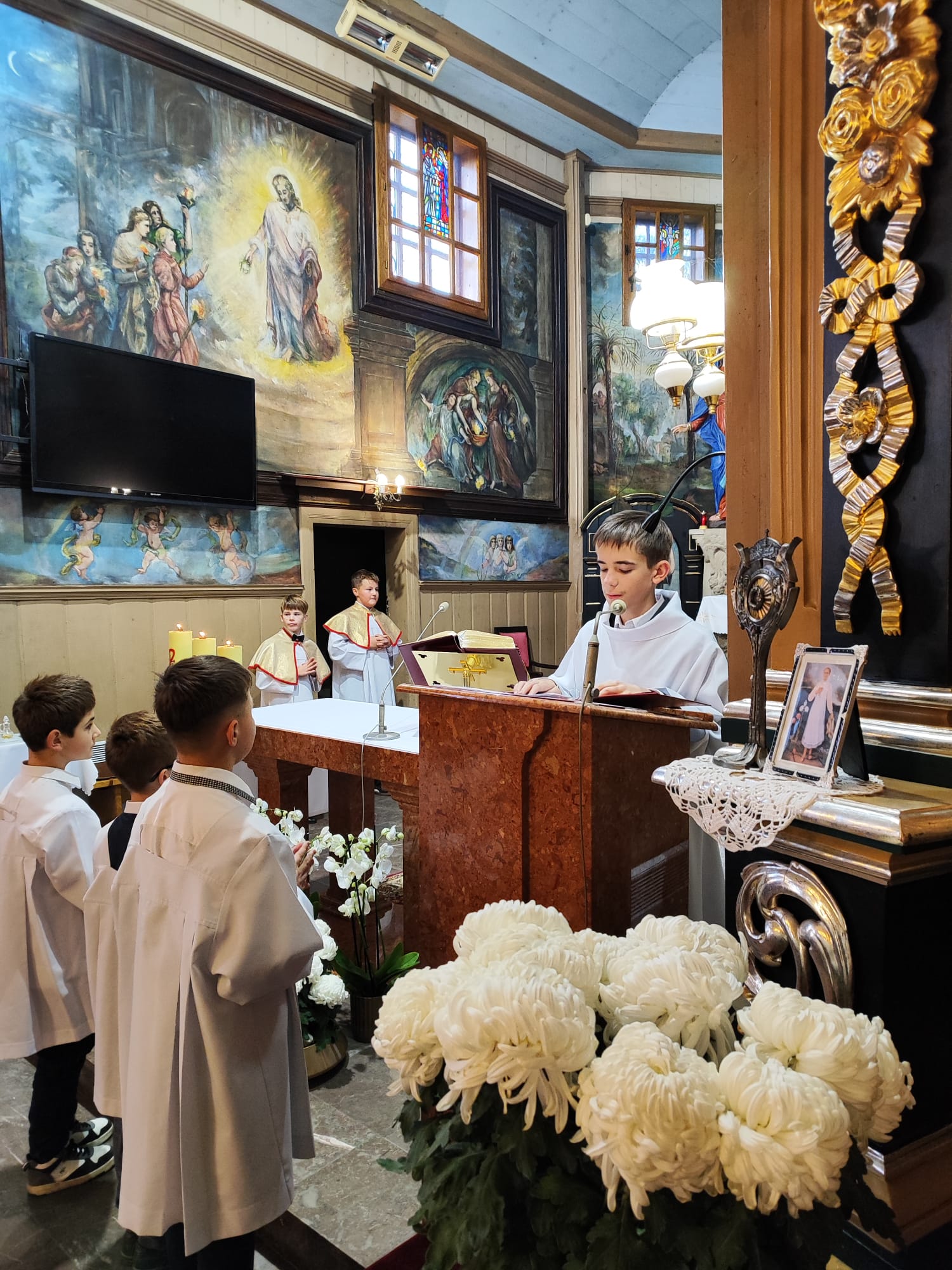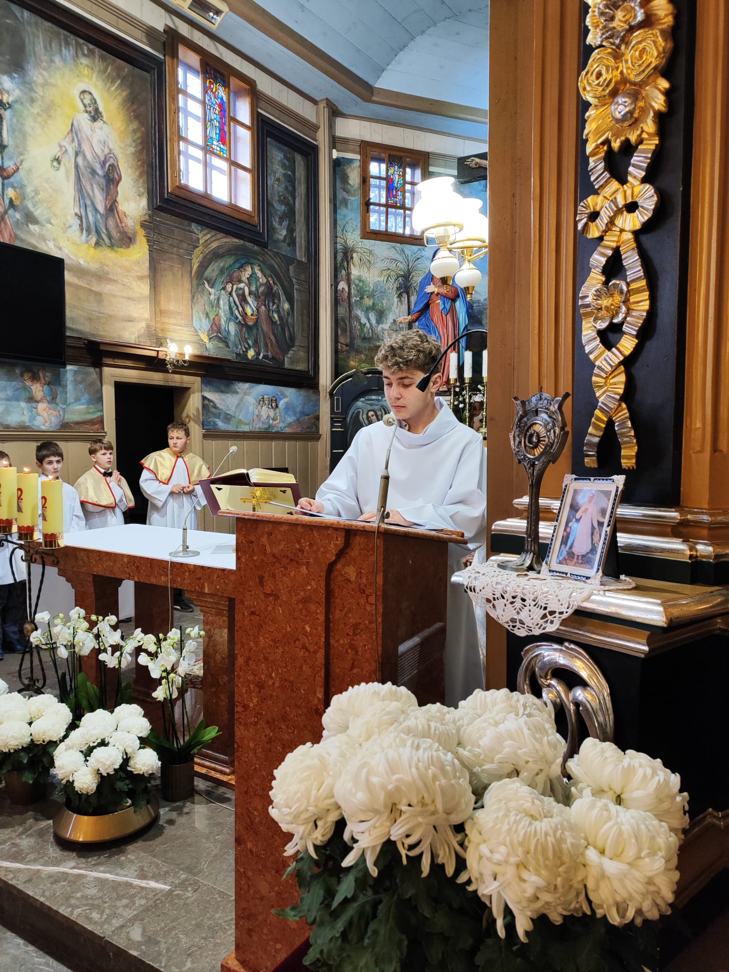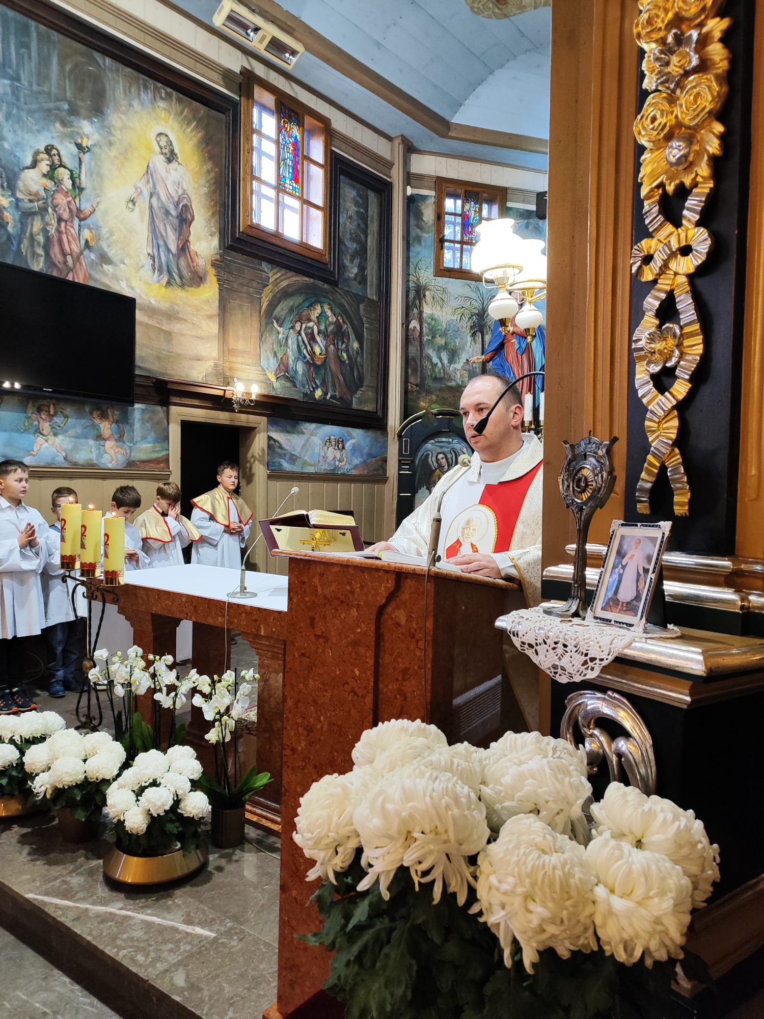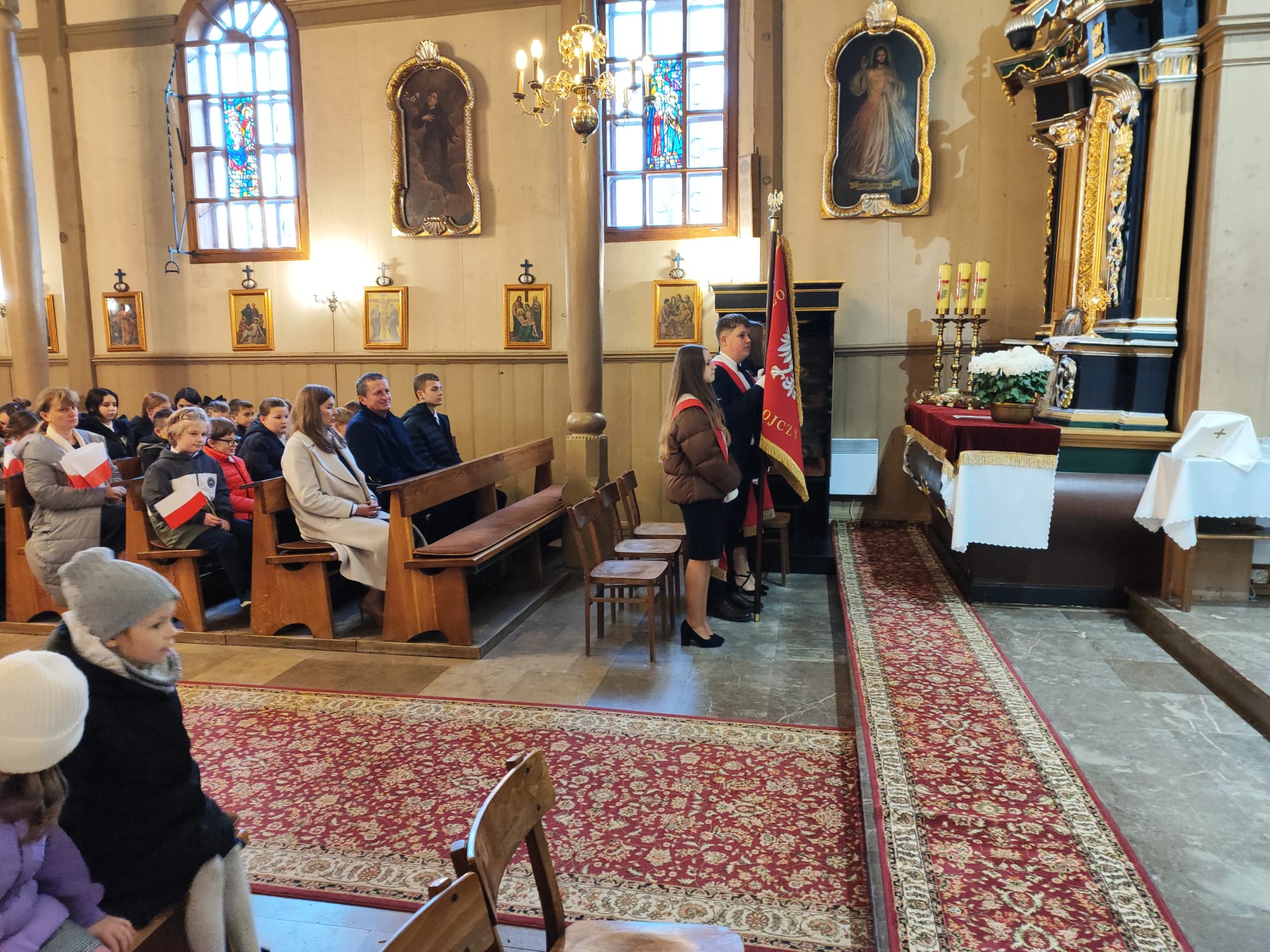 10 listopada 2025 r. to kolejna ważna data w historii naszej Szkoły – święto Patrona – Polski Niepodległej. Uroczystości rozpoczęła msza święta w kościele parafialnym, którą odprawił ksiądz Dariusz Borek. W jej trakcie modliliśmy się za Ojczyznę oraz naszą szkolną społeczność.