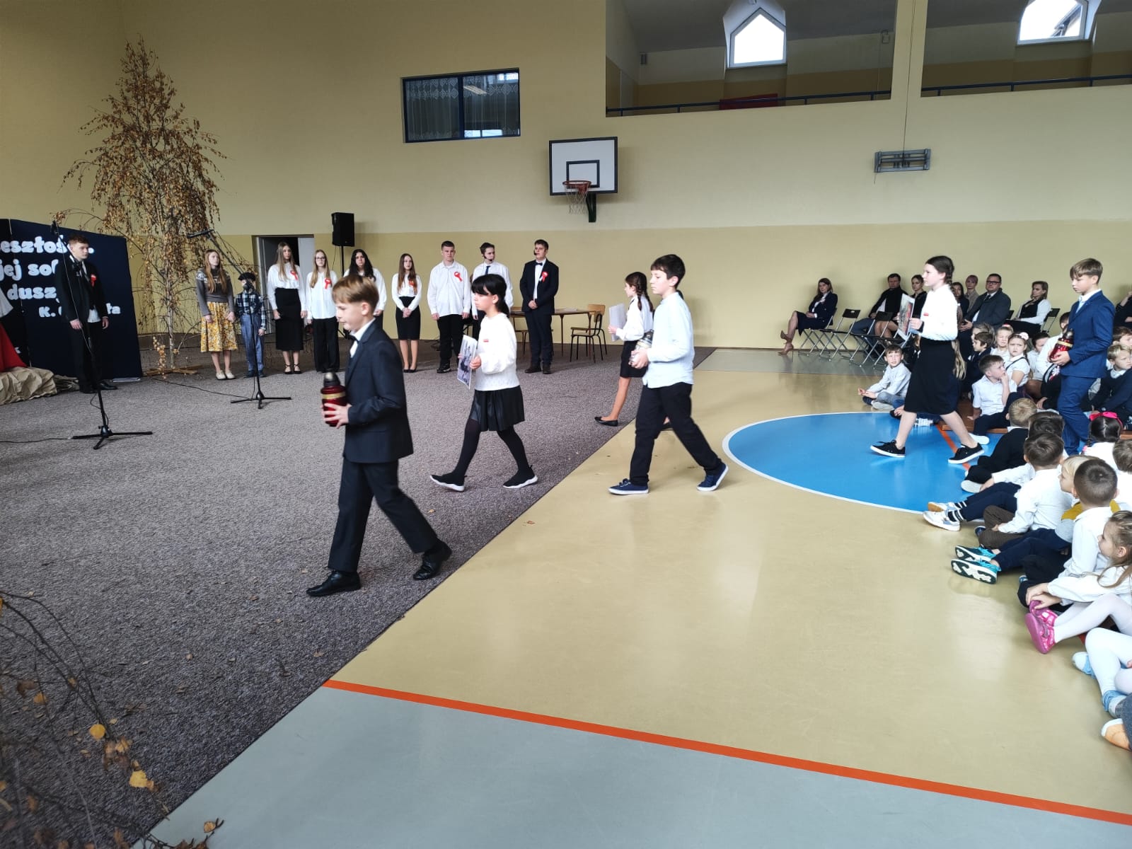Po nabożeństwie uczestnicy przemaszerowali wraz ze sztandarem do szkoły na uroczystą akademię przygotowaną pod kierunkiem mgra J. Musiała. Zaproszenie na nią przyjęli radni Gminy Gródek nad Dunajcem: pan Tomasz Mliczek i pan Artur Cabała oraz sołtyska Rożnowa – pani Izabela Grzesiak. Uroczystość uświetnili również swoją obecnością przedstawiciele Rady Rodziców, rodzice uczniów i mieszkańcy wsi.