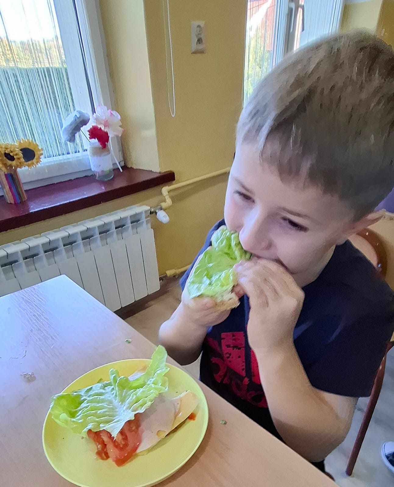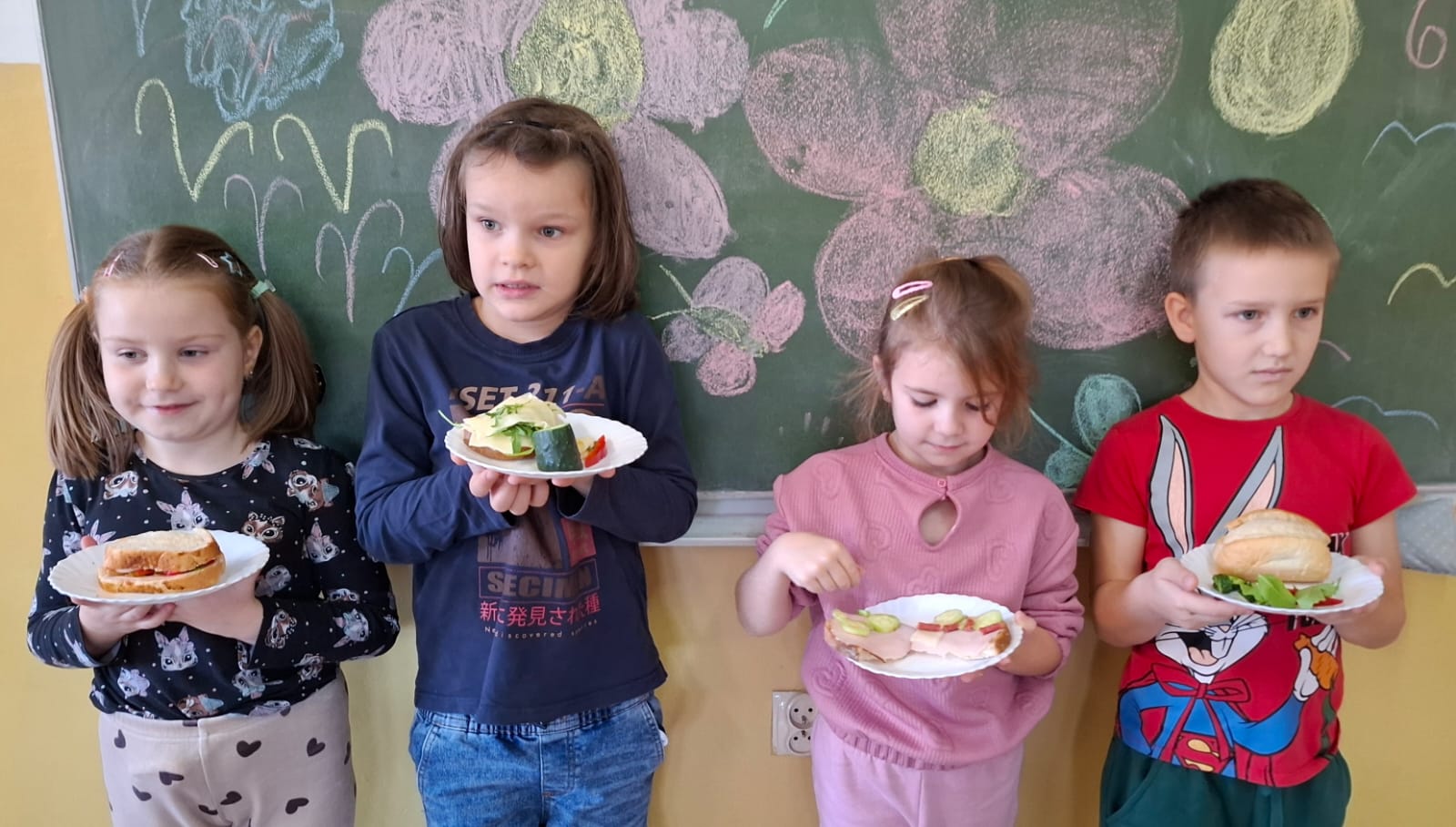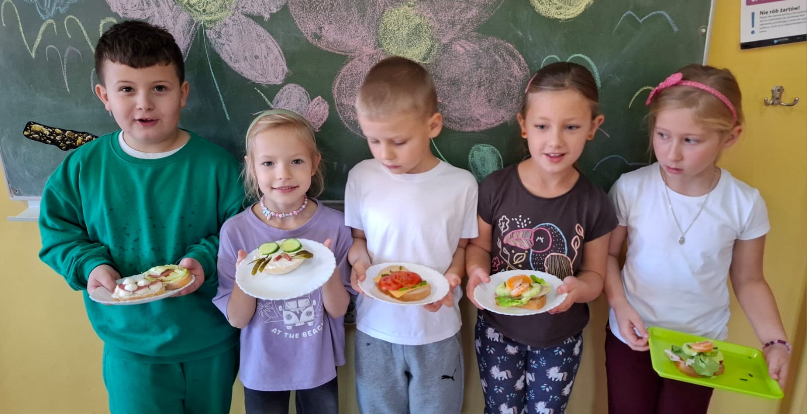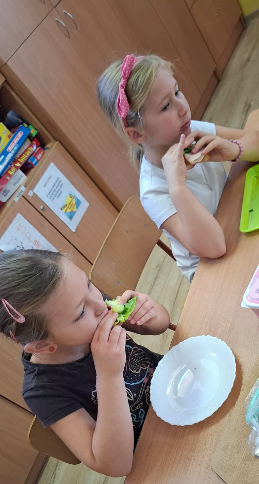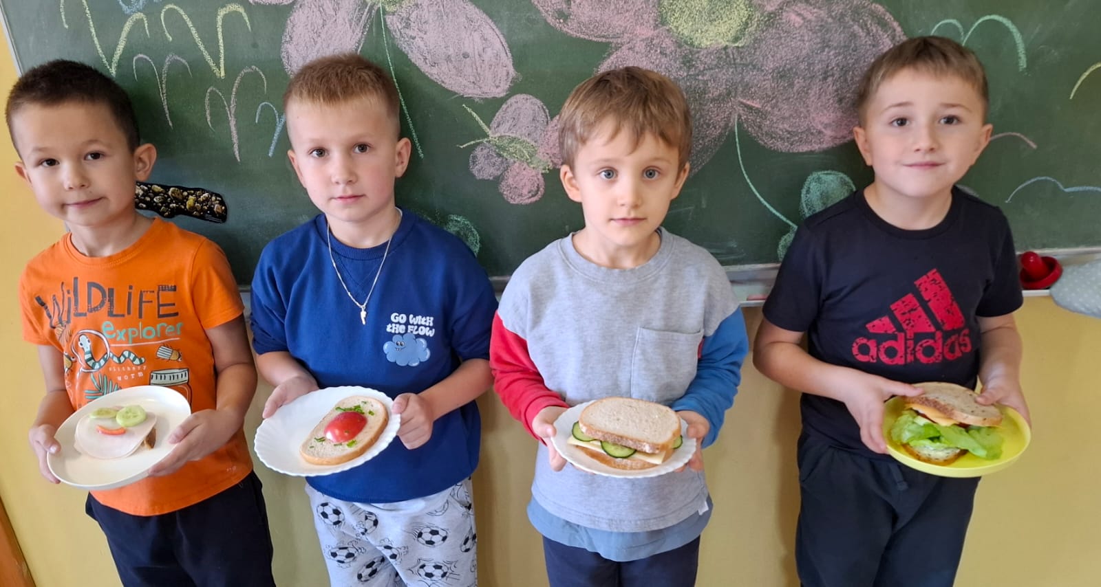 Na zakończenie zajęć uczniowie samodzielnie przygotowali zdrowe kanapki. Nie zabrakło pełnoziarnistego pieczywa, świeżych warzyw i kolorowych dodatków. Wspólne przygotowywanie posiłków było nie tylko pyszną zabawą, ale też cenną lekcją o tym, że zdrowe jedzenie może być smaczne i ciekawe.