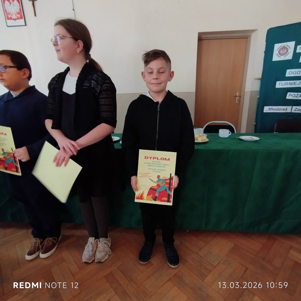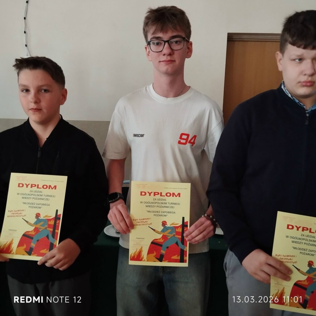 Uczniowie naszej szkoły wzięli udział w etapie gminnym XLVIII Ogólnopolskiego Turnieju Wiedzy Pożarniczej „Młodzież Zapobiega Pożarom”. Konkurs ten od wielu lat popularyzuje wśród dzieci i młodzieży wiedzę z zakresu ochrony przeciwpożarowej, bezpieczeństwa oraz zasad udzielania pierwszej pomocy. 🚒🔥